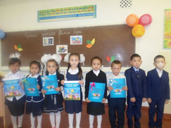 Первоклассников с праздником поздравили сказочные герои: Мальвина, Буратино, Пяточок. Были вручены памятные подарки от Президента Республики Казахстан Н.А.Назарбаева «Менің Отаным- Қазақстан&r…