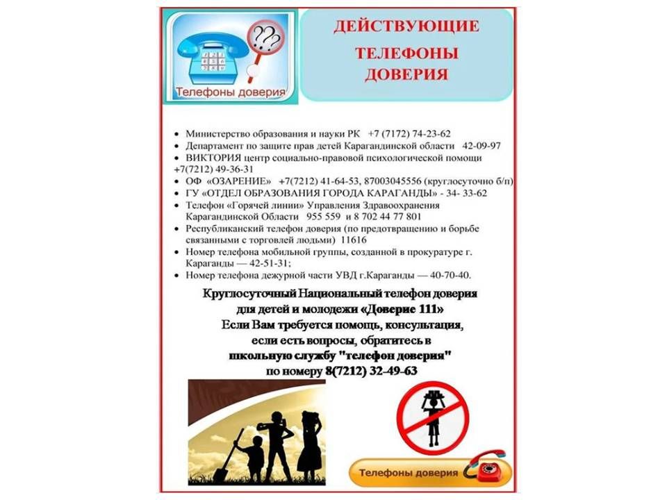 телефоны доверия для детей и семей, оказавшихся в трудной жизненной ситуации
