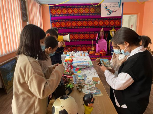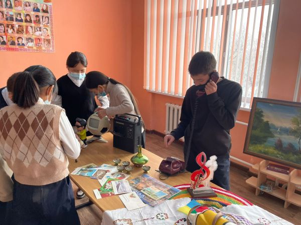 7-8 “Ә” сынып оқушылары қазақ тілі мен әдебиеті мұғалімімен бірге мектеп мұражайына барып, мектептің, Финский ауылының тарихымен танысты.
