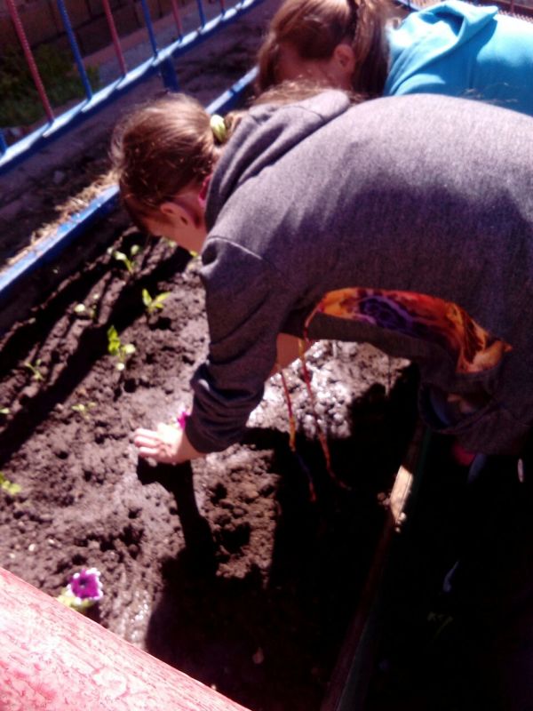 В КГУ СОШ № 60 учащиеся бригады "Зеленый патруль" завершили высадку цветов. Клумбы оформили саженцами петунии, астры, бархатцев. Осуществляют ежедневный полив и прополку клумб