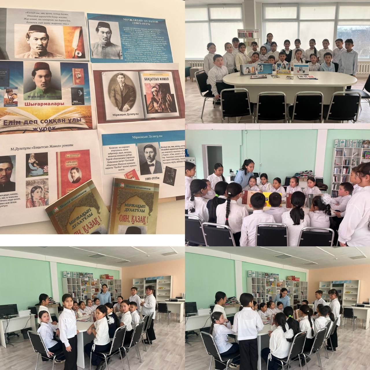 26.11.2025 жылы Мектеп кітапханасында Міржақып Дулатұлының туғанына 140 жыл толуына байланысты.Кітап көрмесімен дөңгелек үстел өтті. Мақсаты: Оқушыларды М.Дулатұлының өмірі мен қоғамдық қызметін таныстыру, ақынының азаматттық жырларына тоқталу, өлендеріне