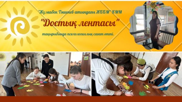 Хажат Т , Малунович А .А. оқушыларымен "Достық лентасы" тақырыбында психологиялық сағат өтті.