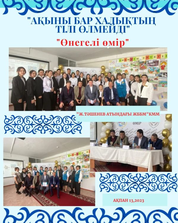 2023жылдың ақпан айының 13-жұлдызында "Жұмабек Тәшенев атындағы ЖББМ"КММ-де "Өнегелі өмір"жобасы аясында "Ақыны бар халықтың тілі өлмейді"атауымен жергілікті айтыскерле…