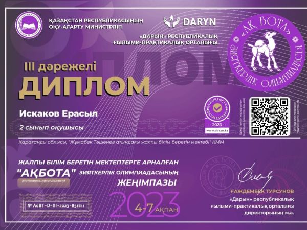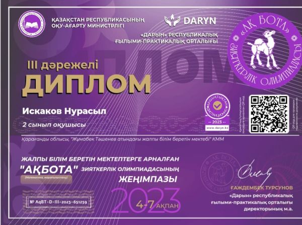 "Ақбота" зияткерлік олимпиадасының жеңімпаздары
