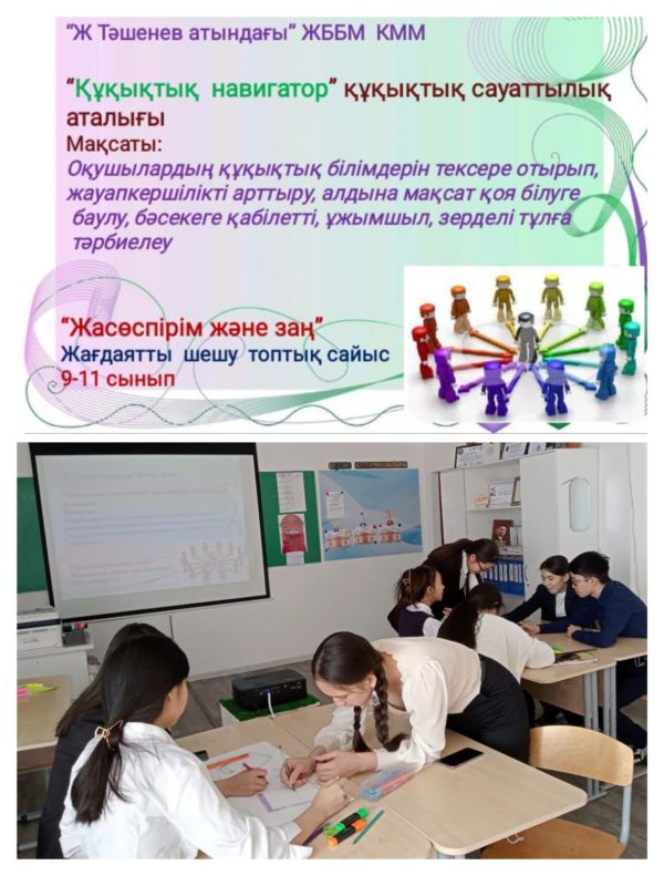 2023жылдың ақпан айының 15 күні "Ж.Тәшенев атындағы ЖББМ"КММ  ✅ Жасөспірімдер арасындағы құқық бұзушылықты алдын алу мақсатында және "Құқықтық навигатор" құқықтық сауаттыл…