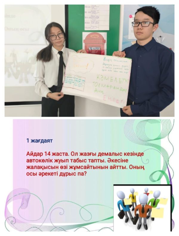 Құқықтық сауаттылық апталығы аясында 9-11сыныптар арасында "Жасөспірім және заң" тақырыбында сайыс өтті.  Мақсаты: Оқушылардың құқықтың сауаттылығын арттыру, зерделі ұрпақ тәрбиелеу…