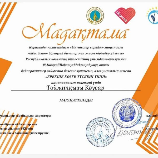 02.03.2021ж. "Оқу сауаттылығы "апталығы аясында ағылшын тілінен What?,Where?,When? интеллектуалдық ойынына 9 сынып оқушылары катысып,9"А"сынып оқушылары 1орынмен,9"В" сынып оқушылары 2 орынмен марапа…