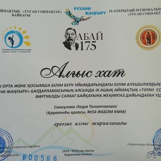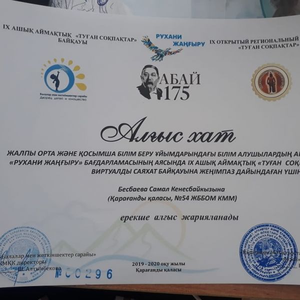 Жалпы орта және қосымша білім беру ұйымдарындағы білім алушылардың арасында "Рухани жаңғыру" бағдарламасының аясында IX ашық аймақтық "Туған соқпақтар" виртуалды саяхат байқауына…