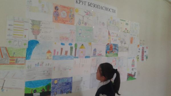 Конкурс рисунков среди учащихся начальных классов: Круг безопасности. Ответственный учитель: Жакудина Г.Ж. Цель: пропаганда безопасного поведения детей на улицах и дорогах, а также мер по защите жиз…