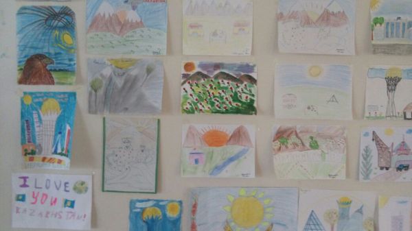 В рамках месячника оборонно-массовых мероприятий среди начальных классов прошла выставка рисунков на тему:" Казахстан-моя гордость"