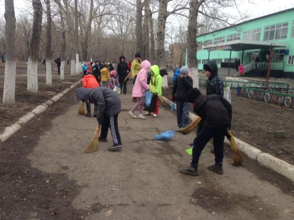 Сегодня 14 апреля 2018 года среди учащихся 1-11 классов состоялся районный субботник.