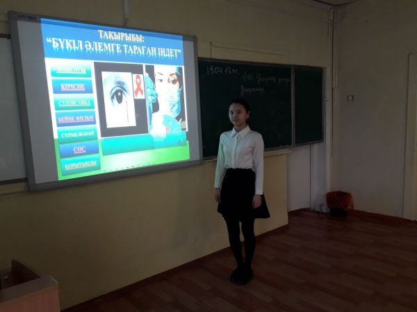 8 "Б" сыныбында "ЖИТС-әлемге таралған індет" тақырыбымен сыныптан тыс іс-шара өткізілді