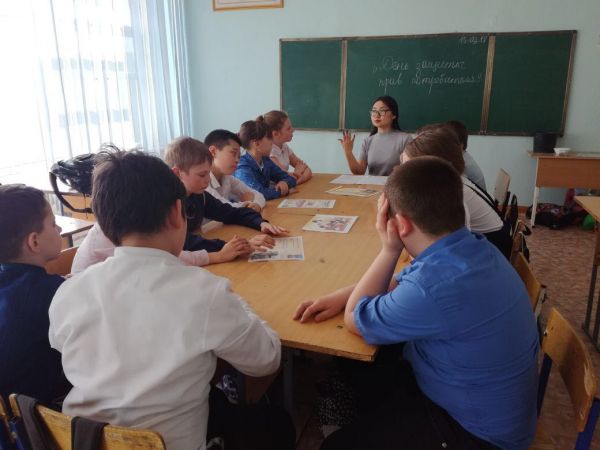 Әкімшілік кодексі бойынша 7"Б" сынып оқушылармен "Жасөспірімдер арасындағы құқық бұзушылықтың алдын алу" тақырыбында дөңгелек үстел өткізілді