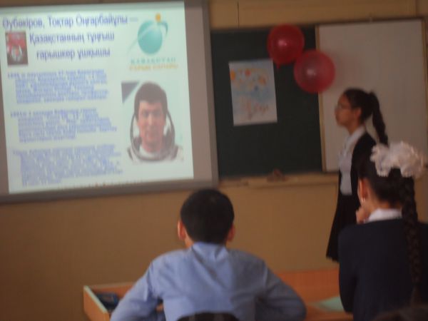 6"А" сыныбында  "Байқоныр-ғарыш айнасы" тақырыбы бойынша сынып сағатты өткізілді. Мақсаты: оқушылардың бойында Отансүйгіштік, азаматтық қасиеттерді қалыптастыру, білімге, ғ…
