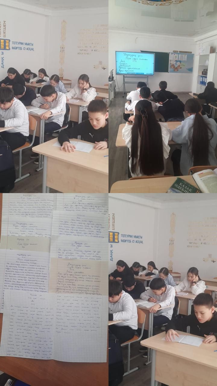 3 наурыз 2026 жылдың Заманауи білім: адал азамат және кітап оқу мәдениеті" атты апталық аясында 8 "Г" сынып оқушыларымен "Тірек сөздер хикаясы" тақырыбында эссе жазды.
