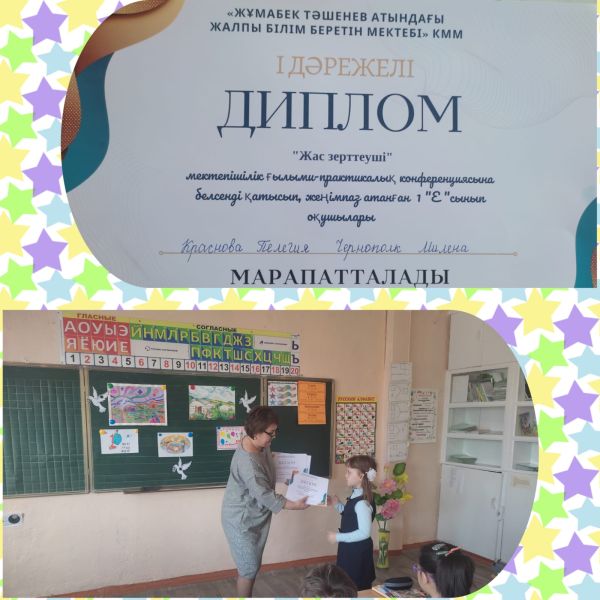 "Ж.Тәшенев атындағы ЖББМ " 1"А"сынып оқушысы Аманбай Айзере "Жас зерттеуші" мектепішілік ғылыми- практикалық конференциясына белсенді қатысып, ІІ дәре…