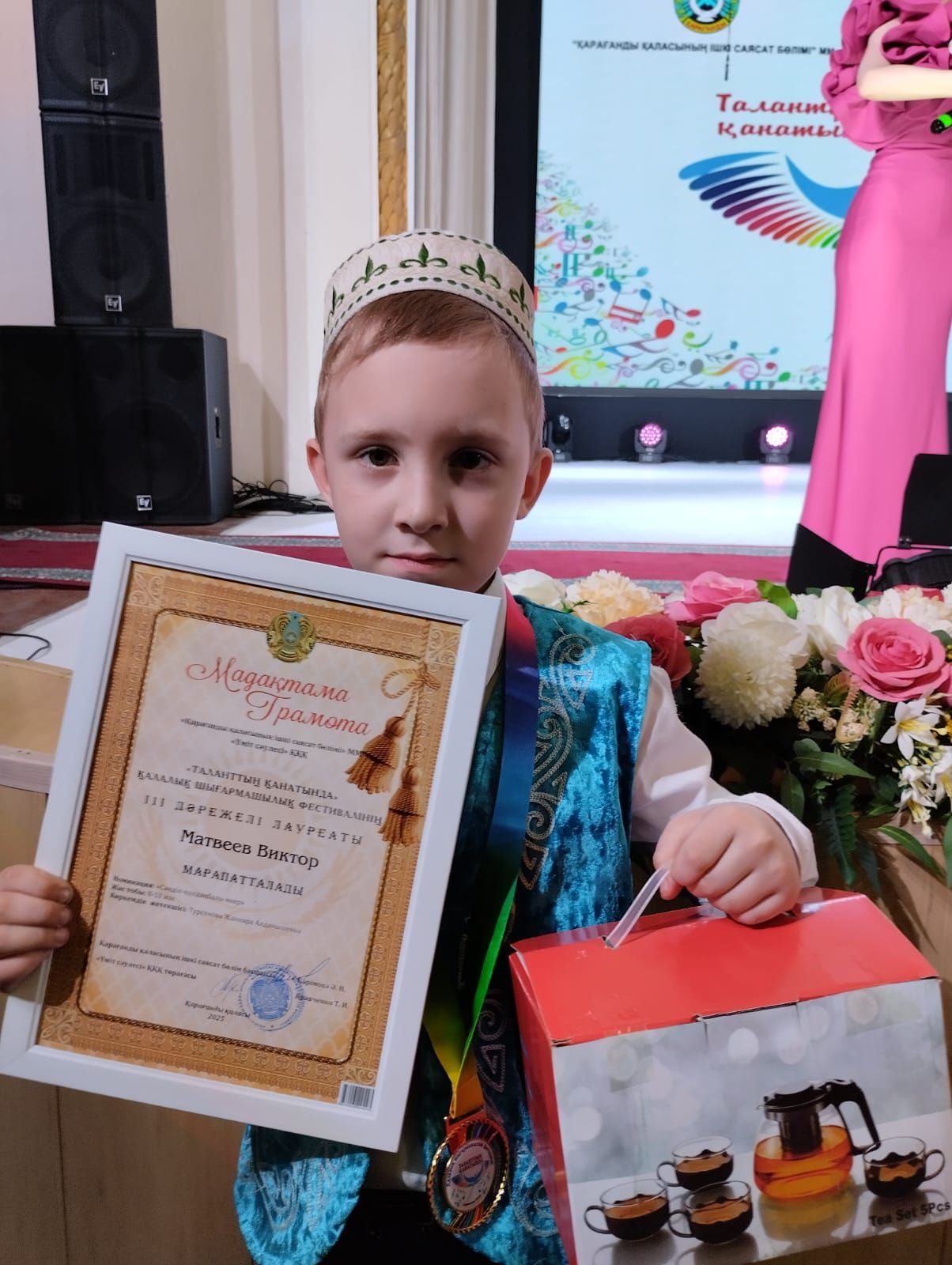 Сегодня учащиеся 2"з"класса получили награды за занятые призовые места в городском конкурсе " Таланттың қанатында".