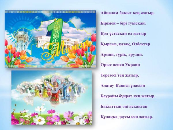 7"Б" сынып оқушылары " Халық достығы " тақырыбында онлайн интернет байқауына қатысып 1-мамыр Халықтарының бірлігі күнімен құттықтаулары