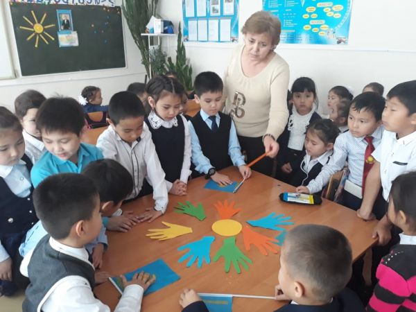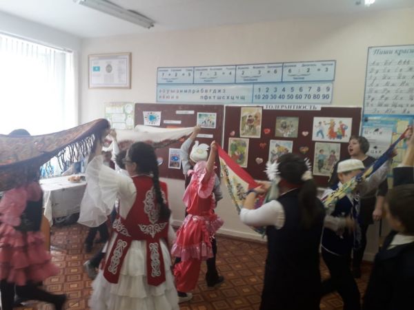 «Все мы разные, но все мы равные». Мероприятие проведенное в рамках недели толерантности. Учащиеся 6д, 6е классов пригласили 4з коррекционный класс. Калелова М.К. Ибраева А.З.