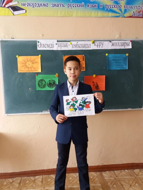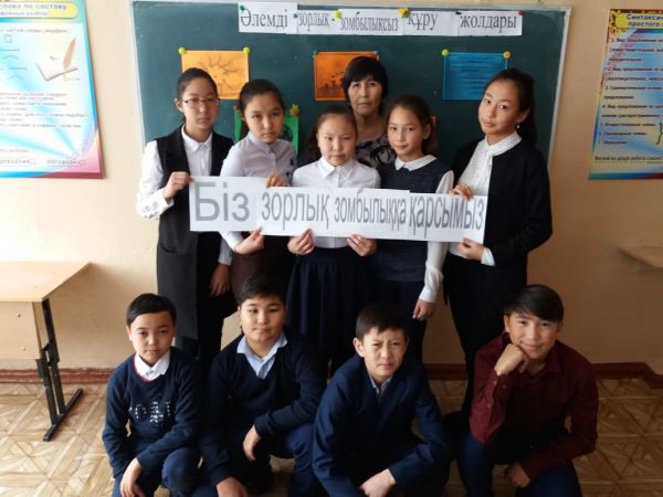 "Зорлық-зомбылықсыз балалық шақ"республикалық науқанына байланысты 7 в сыныпта "Әлемді зорлық-зомбылықсыз құру жолдары" тақырыбында тренинг өткізілді.Өткізген Асылбекова К.М.