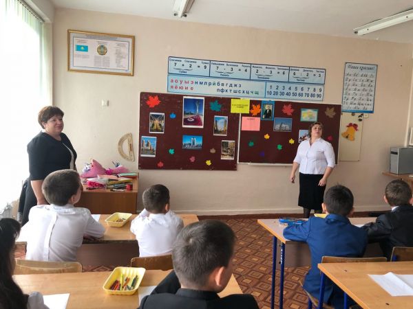 06.09.2018жылы "#54 ЖББОМ" КММ-де қазақ тілі және қазақ әдебиетінің мұғалімі Қасымжанова Зульфия Зарықбайевна тілдер мерекесіне байланысты 10-11сынып оқушылармен "Ұлттың қуаты-тілінде " тақырыбында ко…
