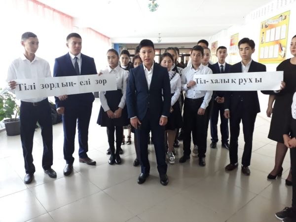 " №54 ЖББОМ" КММ-де 5 қыркүйек күні ҚР Тілде күніне арналған "Тіл-татулық кілті" тақырыбында саптық жиын өтті.