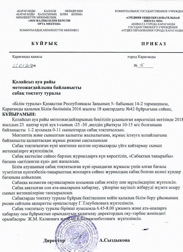 22.01.2018ж. Сабақты тоқтату туралы.