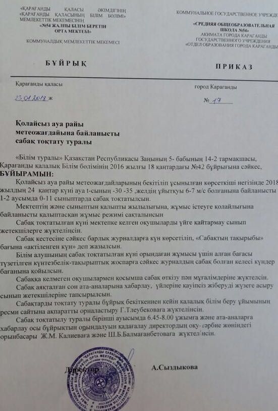 23.01.2018ж. Сабақты тоқтату туралы.