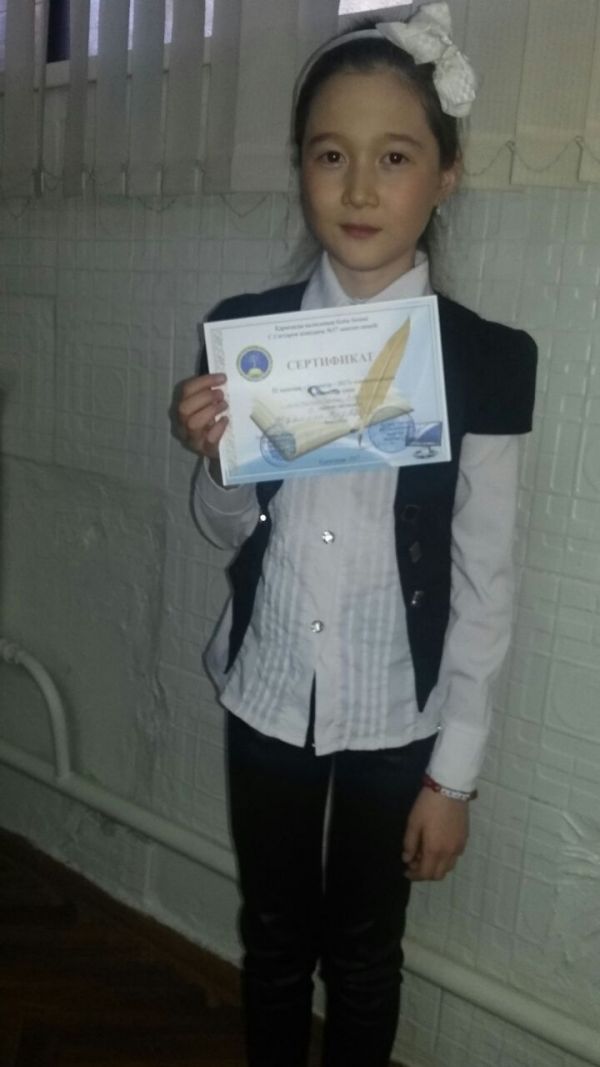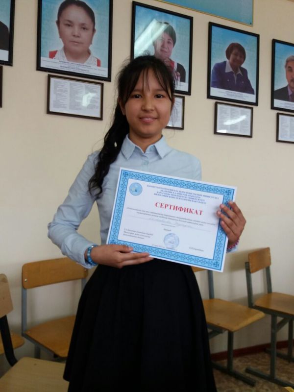 9 сынып оқушысы Балтабаева Назерке " Психологиялық және жас зерттеушілер" ғылыми жобалар байқауынан сертификатпен марапатталды