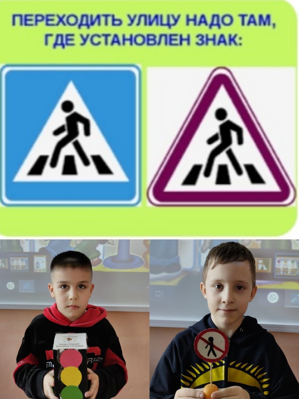 Ребята повторили дорожные знаки, посмотрели видео инструктаж по безопасному переходу и соблюдения всех правил для пешеходов.