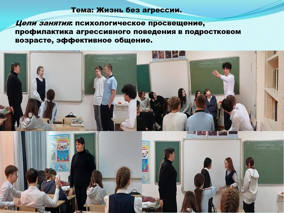 Тема: Жизнь без агрессии. Цели занятия: психологическое просвещение, профилактика агрессивного поведения в подростковом возрасте, эффективное общение.