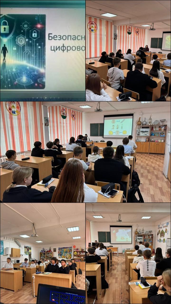 Бүгін 8-9 сынып оқушыларымен “Цифрлық әлемде қауіпсыз қадам”атты шағын видеоролик көрсетілді. Мақсаты: Оқушылардың интернет және әлеуметтік желілерді пайдалану мәдениетін арттыру, жасөспірімдерді интернеттегі қауіптерден сақтануға, өз деректерін қорғауға