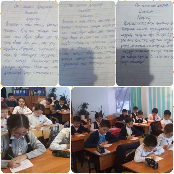 “XXl ғасыр сауатты ғасыр ұрпағы” оқу сауаттылығы апталығы бойынша “ Кітап оқу -рухани кемелденудің көзі” тақырыбында 3 сынып оқушылары диктант жазды.