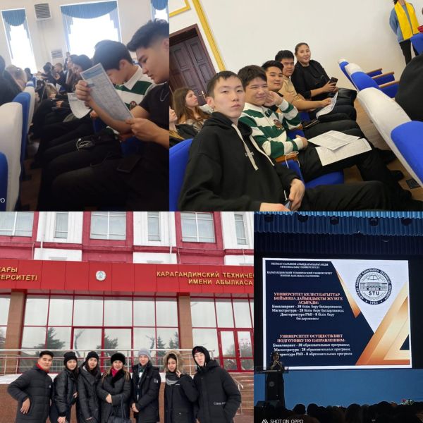 25.11.2022ж. 11 "А" сынып оқушылары А. Сағынов атындағы Қарағанды Техникалық Университетіне экскурсияға барды (ашық есік күні)
