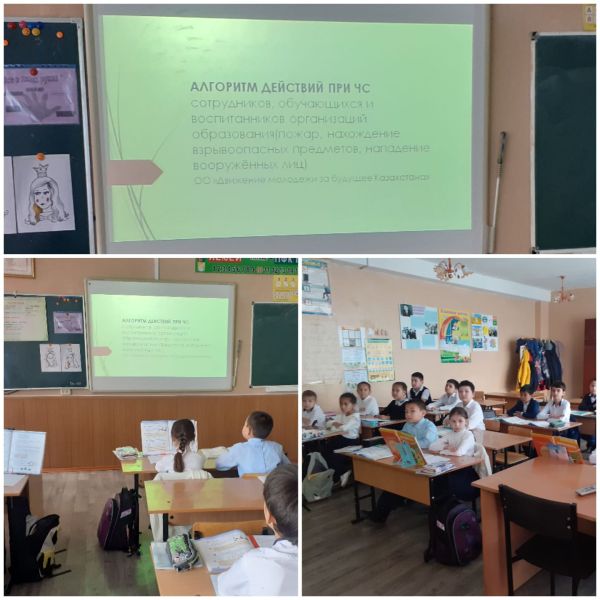 Сегодня в 3"Ж" кл был проведен кл.час посвящённый технике безопасности при различных ЧС. Ребята ознакомились с алгоритмом действий при ЧС и планом эвакуации. Кл.рук: Турсунова Ж.А