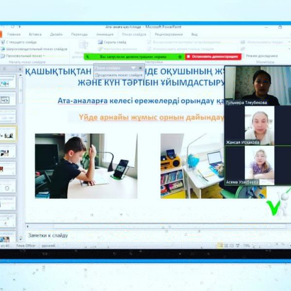19 қыркүйек күні мектебімізде ZOOM платформасында "Жаңа оқу жылында балаларды оқыту" тақырыбында жалпы мектепшілік ата-аналар жиналысы өтті.