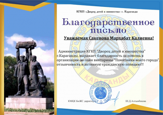 Мектебіміздің Қамқоршылық Кеңесінің төрағасы Рысжанова Б.Н. 2020 жылдың 4 маусымында өткен Қазақстан Республикасы Білім және ғылым министрі А.Қ. Аймағамбетовтың халыққа есеп беру кездесуіне онлайн р…