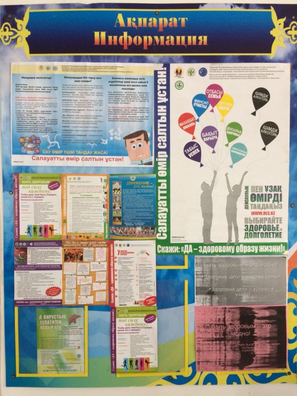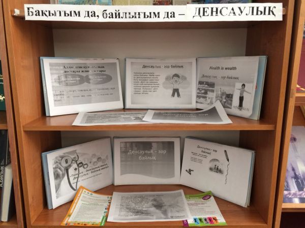 Школьный библиотекарь Еркинбек Бердигуль организовала выставку "Здоровый образ жизни" в школьной библиотеке.