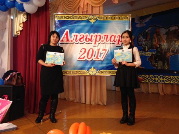 "Алғылар-2017" қалалық байқауының аясында шығармашылық ізденісте құрған инновациялық жобалары үшін Қайырбекқызы Аягөз марапатталды және жетекшісі Исабекова жанагүл Оміртаевнаға беріл…