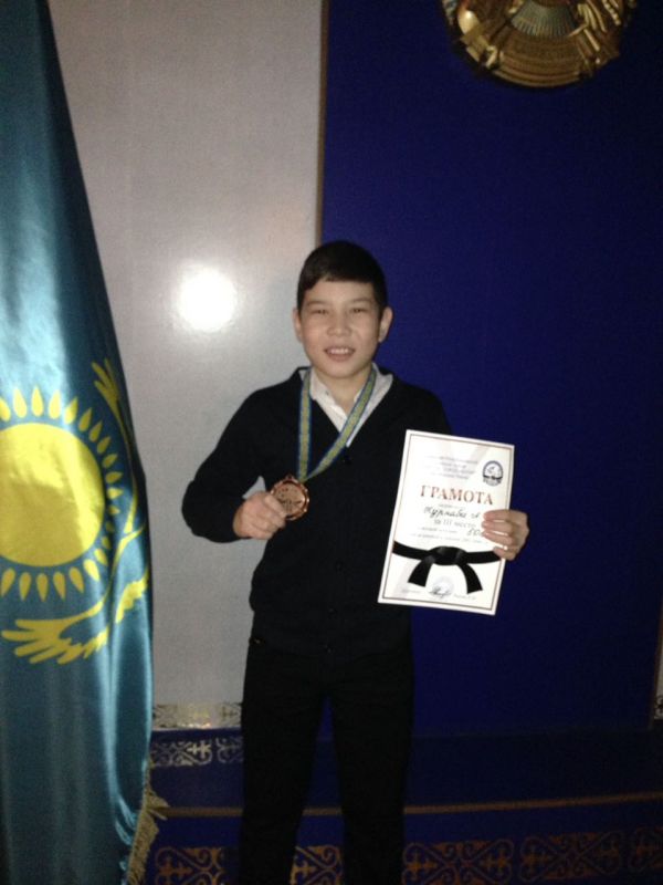 Был награжден за занятое 3-место ученик 8Б класса Нурнаби.А в весовой категории 50кг среди юношей и девушек 2002-2004 г.р