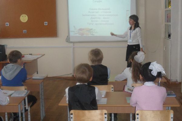 4 «В» сынып жетекшісі Алданазарова Ж.Е.сынып оқушыларымен 1 желтоқсан -Тұңғыш Президент күніне арнап «Менің тұңғыш Президентім!» тақырыбында сайыс сабағын өткізді.