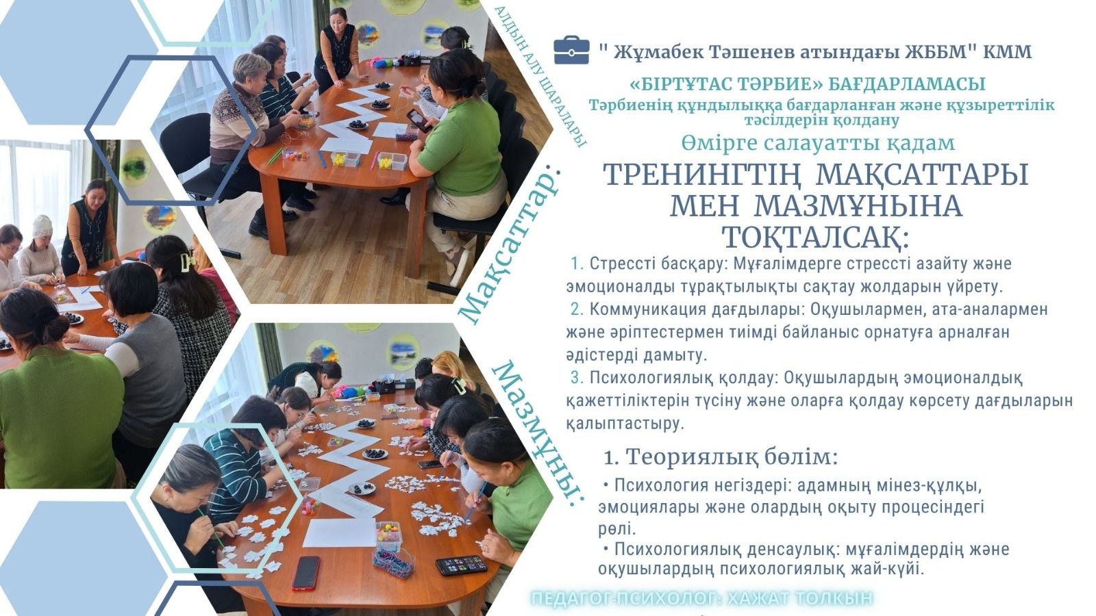 Педагогтарға арналған қарым-қатынасқа бағытталған психологиялық тренингтер оларды тиімді қарым-қатынас орнатуға, өз эмоцияларын басқаруға және оқушылармен, әріптестермен оңтайлы байланыс құруға үйре…