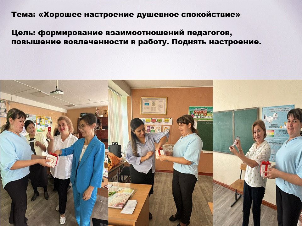 Цель: формирование взаимоотношений педагогов, повышение вовлеченности в работу. Поднять настроение.