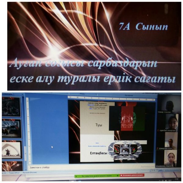 7А сыныбында "Ауған соғысы сарбаздарын еске алу туралы ерлік сағаты" атты тәрбие сағаты өтті. Мақсаты Интернационалды соғыстағы қазақ сарбаздарының ерлігін ұмытпуға, тағзым етуге тәрбиелеу. Елін, жері…