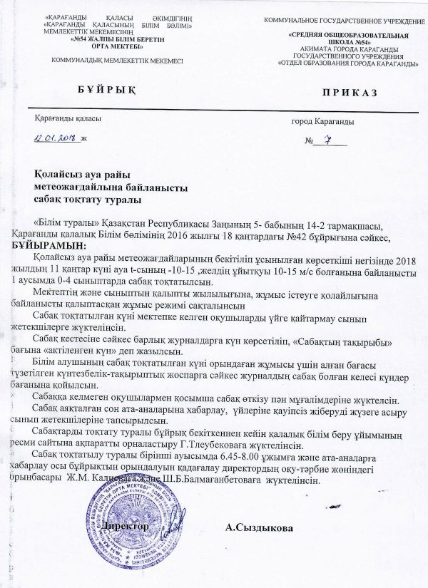 Қолайсыз ауа райы метеожағдайына байланысты сабақ тоқтату туралы.