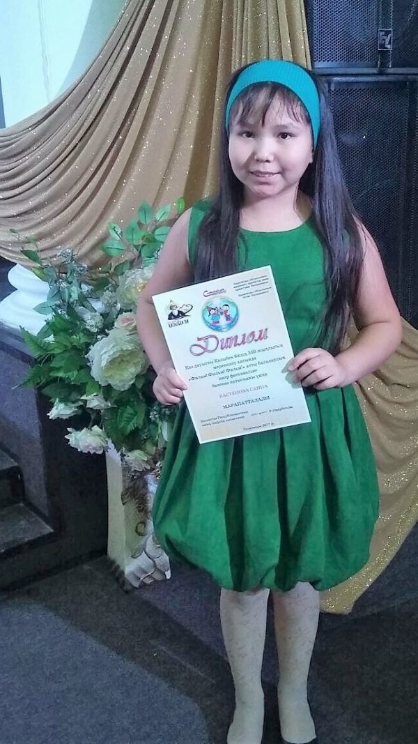 Қаз дауысты Қазыбек бидің 350 жылдығын мерекелеу аясында "Фильм! Фильм! Фильм!" атты баллардың өнер фестиваліне белсене қатысқаны үшін 5 "В" сынып оқушысы Бастенова Саина марапат…