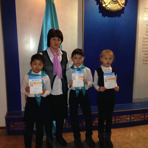 Ақбота олимпиадасы бойынша 4 В сынып оқушылары Камзина Мадина, Абдирахимұлы Ерназар, Нуртазина Аружан марапатталды