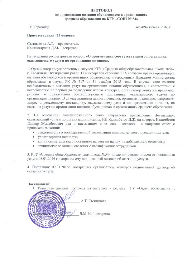 Протокол тамақтандыру қаңтар-наурыз 2 017ж