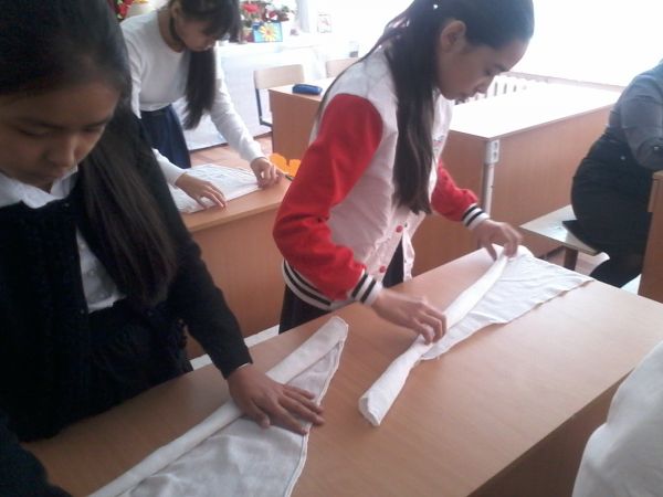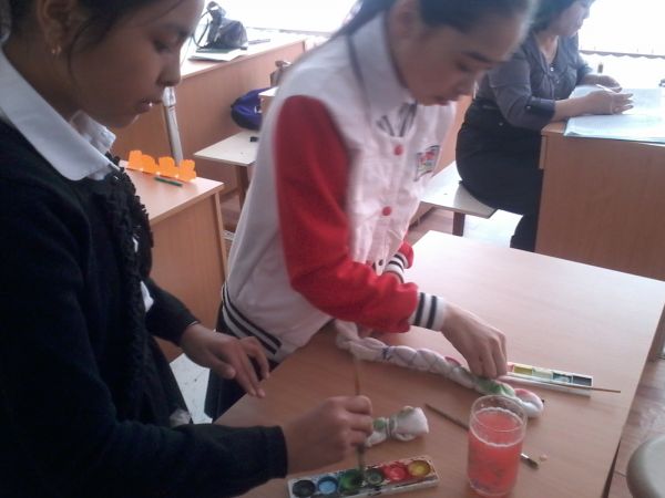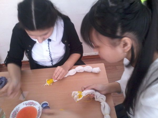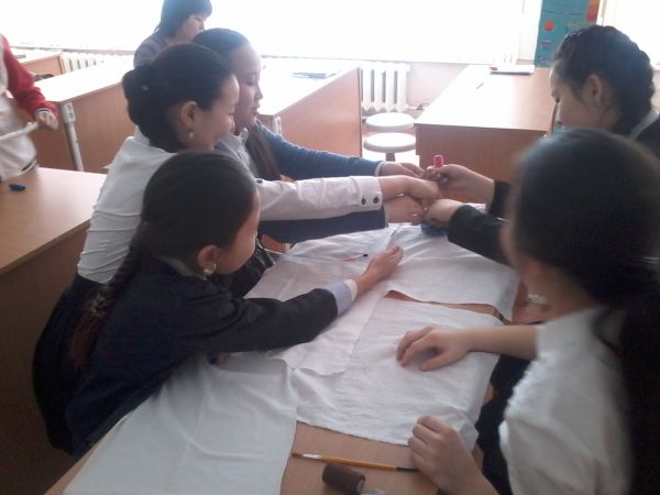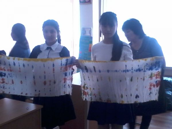 8"А" сыныбында "Матаны батик әдісімен әшекелеу" тақырыбы бойынша технология пәнінен ашық сабақ өтті.