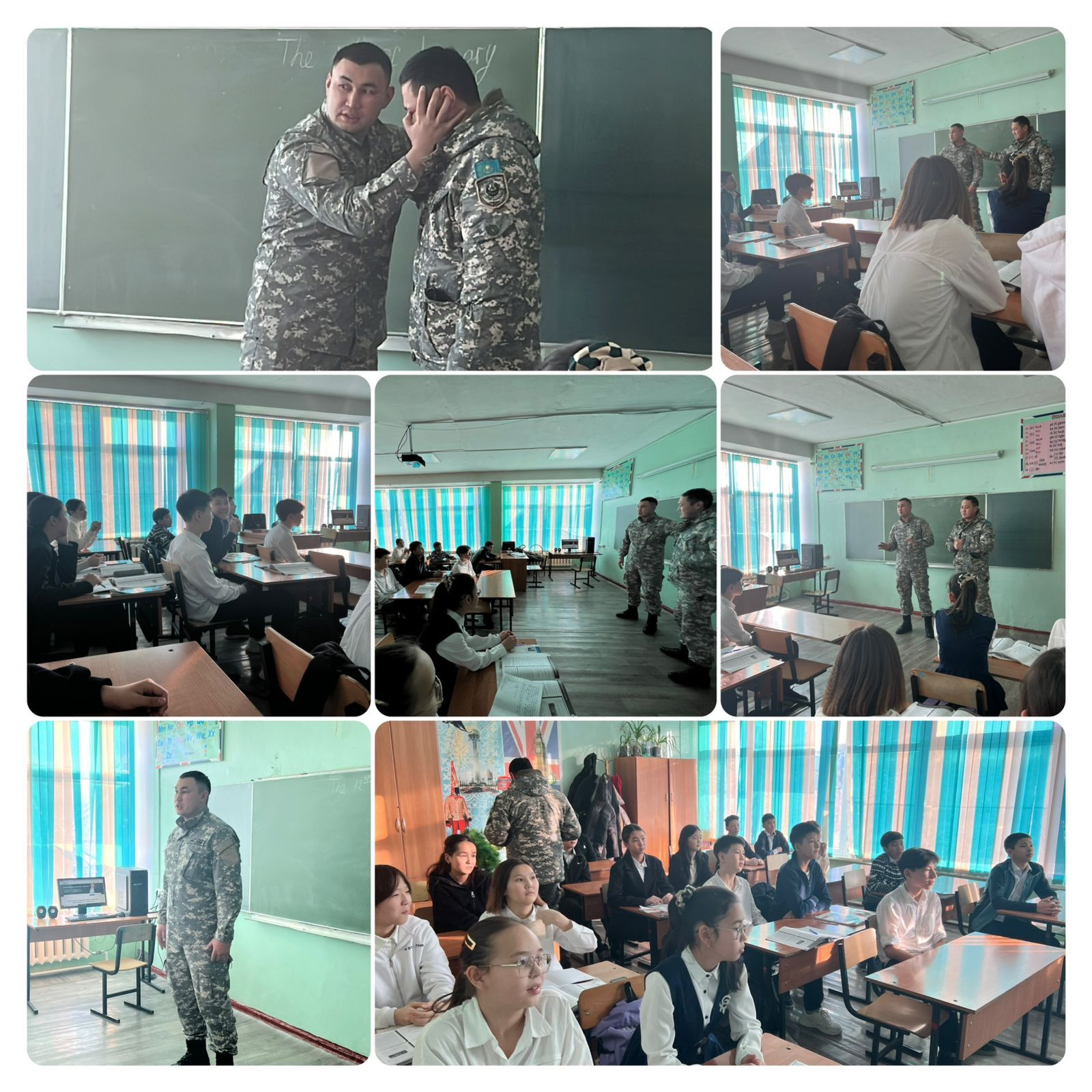 Қарағанды облысының ПД АЖДБ аға инспекторы мен полиция аға лейтенанты Дөнентай А.Е ,Қойбағаров Б.Б.  7 “А” сынып оқушыларына өзін-өзі қорғау тақырыбына лекция өткізді.
